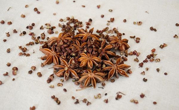八角:選紅棕色、暗紅色的。正常加工的八角顏色多為紅棕色或暗紅色,顏色稍暗,而硫磺熏蒸的八角顏色鮮亮。另外,硫磺熏蒸后的八角聞起來會有一股刺鼻的味道,甚至?xí)兴嵛?,其手感干燥、重量較輕。正常的八角則充滿香味,容易吸潮,捏一捏明顯感覺質(zhì)地較柔軟。